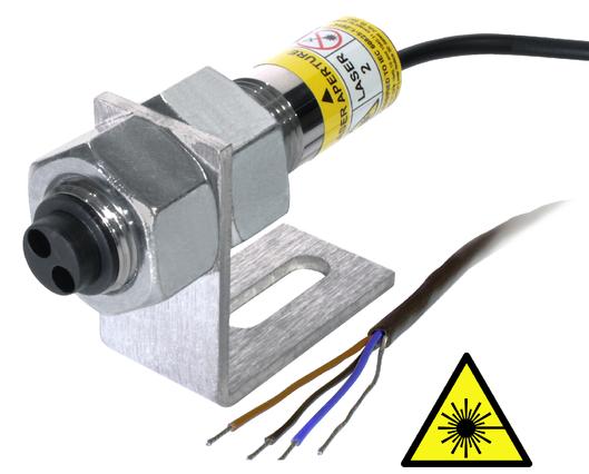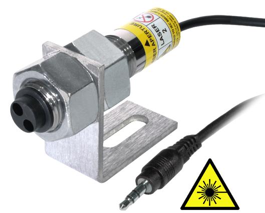 Modelo ROLS-P-25: Sensor óptico a laser remoto com cabo de 25 pés, conector de plugue de telefone de 1/8 "(3,5 mm), suporte de montagem com contraporcas e 12 polegadas de fita T-5.